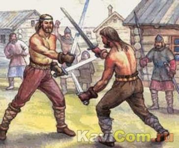 Боевые искусстваСлавяно-горицкая борьба История пишется дважды: сначала - неумолимым временем по пергаменту бытия, потом - рукой летописца. В одном случае перед нами сам факт, в другом - его изложение. Излагать, как известно, можно по-разному. Иное изложение ставит в укор истории реальное событие, замалчивает его, изводит из памяти народной. В предлагаемом повествовании вы столкнетесь с многоголосием суждений и оценок во имя поставленной цели - поиска пути. И действительно, чего бы стоили эти записки, если бы суть их уже изначально определялась некой идеей, а содержание - соответствующими доказательными штампами? У меня есть выбор: либо настаивать, как делает большинство исследователей, на объективности своих изысканий, либо, напротив, скромно ссылаться на собственную точку зрения. Так вот, содержание книги - это авторская позиция. Итак, начнем. Не задумывались ли вы, что такое понятие, как боевое искусство, неразрывно с историческим портретом самого народа? Понятие это, ныне столь узнаваемое благодаря прижившимся у нас восточным единоборствам,- всегда составная часть национальной культуры, можно даже сказать - ее мерило и символ. Потому наше углубление в отечественную историю небезосновательно. Оговорюсь: датировка возникновения боевого искусства - чистейший абсурд. Ведь как принято считать, первое упоминание в источниках определяет и летосчисление. Так, отечественный состязательный бой отмечен пером летописца под 993 годом. Но ведь культура формируется пропорционально развитию человеческого общества, и возникновение ее как явления нельзя связывать с конкретным историческим событием. У культуры есть этапы становления, этапы взлета и упадка. Потому некоторым цинизмом отдает от православных восклицаний - 1000-летие славянской культуры! 1000-летие славянской письменности, 1000-летней славянской архитектуры!... Кстати, что касается архитектуры, следует напомнить: Русь VIII - IX веков, то есть задолго до Владимира-крестителя, скандинавами именовалась Гардарикой, или Страной городов. Культовые же постройки, помимо шатровой архитектуры с ее массивными каменными храмами, удовлетворились, главным образом, языческой формой в виде фаллического столба с округлой крышей. По поводу письменности тоже промашка вышла - церковники спутали славянскую письменность с церковнославянской, которой действительно тысяча лет. Так одним махом российская история потеряла несколько тысячелетий. Но вернемся к боевому искусству. Понять его самобытность, идейно-нравственный строй, отличительные черты и достоинства можно, лишь вскрыв прямые исторические связи с самой этнокультурой. Славяно-горицкая борьба. Что это такое? Все боевые искусства неразрывно связаны с историческим портретом народа. Понятие это, ныне столь узнаваемое благодаря прижившимся у нас восточным единоборствам, неотделимо от состязательной традиции и является частью национальной культуры. В наше время эта часть традиционного образа жизни русского народа незаслуженно забыта. А ведь нам есть чем гордиться. Славяне испокон веков отличались на поле брани, побеждая в войнах. Это было бы невозможно без высокого уровня развития ратного мастерства, передаваемого из поколения в поколение. Славяно-горицкая борьба соединяет самые разноплановые традиции отечественной состязательной культур