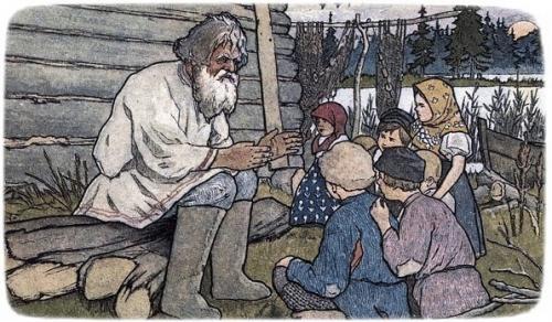 Как наши предки мудрость детям передавалиОдним из способов передачи мудрости было загадывание загадок. Особенность их в том, что никакие логические размышления не в состоянии вывести на верный ответ. Вот, к примеру, всем известные загадки: «Без окон, без дверей полна горница людей», или «Сидит краса в темнице, а коса на улице». Не зная ответа, современный человек, обладающий логическим складом ума, вычислить, что это огурец и морковь, не в состоянии. В старину тот, кто отгадывал загадки, должен был упражняться в непосредственном восприятии ответа. Не слова как условия загадки, а сам загадывающий загадку нёс в себе ответ. Вождение хоровода было своеобразным магическим обрядом. Взявшись за руки, люди раскручивались, как правило, вокруг костра, и концентрировали коллективный образ того действия, которое должно было впоследствии произойти. В ведические времена был прекрасный способ передачи мудрости, это сказание сказок. Само слово «сказка» говорит о том, что это не писаные знания, а рассказы, передаваемые устно сказителем. Знаний в сказках не так много, но в них передавался настрой, дух, стремление героев. Сказки были формой образования (учебного процесса) ведического общества. Обычно сказки рассказывались на ночь глядя, когда мозг наиболее нелогичен и вследствие этого более восприимчиво внимание. Дети вместо школы слушали сказки с самого раннего детства, как только могли понимать речь сказителя. Цифры в сказках появились намного позднее и в основном указывают на систему, это три, шесть, девять, двенадцать голов у Змея Горыныча и тридевятое царство, тридесятое государство, находившееся где-то очень далеко, и так далее. Недаром в последующие времена, с принятием Русью христианства, сказание сказок осуждалось церковью, приравнивалось к тяжёлому греху, к преступлению против веры. Как реакция на гонение церковью, сказители стали сказывать сказки, высмеивающие попов. Но, тем не менее, даже цари держали при себе сказочников. Так, у Ивана Грозного были слепые рассказчики. У царя Михаила были сказочники Клим Орефин, Пётр Сапогов и Богдан Путята. Несмотря на гонение сказочников, сказки продолжали существовать, хотя те ведические сказки сейчас мы не отыщем ни в одной книге. Со временем изменились сюжеты. Русские имена поменялись на иудейские, такие, как Иван, и греческие – Василий, Василиса, появились цари, деньги, арифметика, торговля. В сказках начинает ощущаться кастовое (классовое) расслоение общества. Чёрная кость, мужик – низшая ступень в сказках. Нелогичность сказок и дух оставалась вплоть до наших дней. Мужик мог поцеловать царевну и жениться на ней, залезть коню в одно ухо, вылезти из другого. Несоразмерность форм и размеров в сказках ломают всякие физические представления. Там множество чудес, которые не в состоянии описать ни одна современная наука. Крайне нелогичен и сюжет, сказка может начаться одним, в середине речь идёт совсем о другом, а конец – о третьем. В двадцатом веке сказки теряют свою былую популярность, их заменили садомазохистские сказки Чуковского и советские типа дяди Стёпы. В Европе и Америке с приходом мультипликации и кинематографии сказки были вытеснены такими произведениями как «Том и Джерри», «Моряк Папайя» и другими. Где ничего не осталось от ведических времён и, по своей сути, они представляют собой жвачк