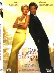 Как отделаться от парня за 10 днейНазвание: Как отделаться от парня за 10 дней О фильме: Журналистка Энди Андерсон из журнала получает довольно необычное редакционное задание, которое, к тому же, надо сделать очень быстро. Ей вменяется в обязанность написать статью о том, что выдумывают женщины для того, чтобы отделаться от мужчины, когда они его больше не хотят лицезреть рядом. На всё про всё у неё только 10 дней, через которые материал должен лежать на столе главного редактора. Ей необходимо найти в толпе парня, влюбить в себя, а затем совершить все классические выкрутасы капризной красотки. На беду Энди её выбор пал на молодого рекламного агента Бенджамина Бэрри, который сам как раз заключил со своим боссом пари, что он сможет влюбить в себя девушку за 10 дней. Может ли такое странное знакомство, основанное на авантюре и замешанное на лжи, привести к взаимности? Просмотров: 8951