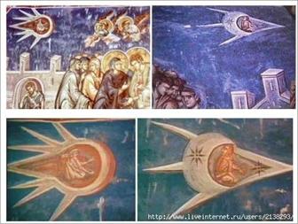 «Космонавты» с Дечанских фресокПодписчики югославского журнала «Свет» в марте 1964 года пережили волнение: журнал преподнёс им удивительное сообщение, граничащее с сенсацией. Читатели увидели на страницах еженедельника захватывающие заголовки, странные иллюстрации и комментарии к ним: «Чудо» в Дечанах было открыто в начале 1964 года. Студент югославской Академии живописи Александр Паунович с помощью телеобъектива сделал фотографические снимки фресок, в том числе и фресок «Распятие» и «Воскресение» Христа. То, что раньше не удавалось рассмотреть в подробностях, так как фрески находятся на высоте пятнадцати метров, стало доступным обычному невооружённому глазу. Открылись детали, которых прежде никто не замечал...