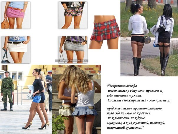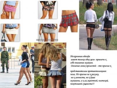 Мы изо всех сил, хотим, чтобы нас любили, но одеваемся так, чтобы нас хотелиМногим уже изрядно надоели частые разговоры о том, какой все таки должна быть наша одежда. Но если исходить из логики, то в приличном обществе и одежда должна быть - приличной. Давайте зададим себе вопрос - в каком обществе хотим жить мы и хотим чтобы жили наши дети? Если мы определились, что хотим для себя и для наших детей достойной и приличной жизни, то почему же в наше время все труднее и труднее становится различить приличную одежду от не приличной? Мне приходилось слышать высказывания девушек: "...я считаю, что одеваюсь прилично и мне не нужно говорить, что можно одевать, а что нет!.." Но извините, если посмотреть на ту одежду, которую она носит, то это совершенно далеко от того, что можно назвать словом "прилично". Становится больно до слез, почему же молчат матери, почему позволяют своим дочерям показывать сокровенные части своего тела и вызывать похоть у противоположного пола? Но даже и от замужних можно слышать подобные высказывания: "Если кто из противоположного пола смотрит на мои колени, только потому что юбка, якобы, слишком короткая, то пусть лучше позаботиться о своей нравственности и о том, чтобы не смотреть туда, куда его не просят" Но мужчины так уж устроены, что они очень четко замечают все тонкости женского тела, и если девушки одеваются не целомудренно, то они автоматически подводят себя под осуждение. Когда в природе появились мужчина и женщина, то они тут же были наделены влечением друг ко другу, чтобы они таким образом продлевали свой род, это логично, таков закон мироздания и это совершенно нормально. Другое дело, что люди отличаются от других представителей фауны тем, что при правильном воспитании и понимании они могут контролировать свои природные инстинкты, которые присущи, пожалуй, всему живому. Задумывались ли мы хоть раз, что наши дети как "губка"? Что они впитают в детстве, то потом проявится в будущем, когда они повзрослеют. Дети - это наше продолжение, продолжение творения природы, а следовательно на них распространяются все законы природы, в том числе и инстинкты, только начинают проявляться они уже в более старшем возрасте, но почва для их проявления заклавдывается намного раньше. Мы не имеем права пускать их плыть по течению и ждать, что когда-то они повзрослеют и поймут, что можно, а что нельзя. Во что можно одеваться, а на что вообще и посмотреть нельзя при покупке одежды. Детям как младенцам, необходимо вкладывать в рот живую и питательную пищу. Вкладывать с любовью, без лишних эмоций и криков. Точно также и с "пищей" для ума. Одному известному учителю задали вопрос, как бы он воспитывал своих детей прожив уже такую долгую жизнь, набравшись не мало опыта. На что он ответил, что делал бы это совсем по другому, не так как раньше: с натиском, по-учительски, как в школе. Учить ребенка необходимо в непринужденной обстановке, что он понял уже после, с годами. А ещё лучше нужно менять себя, потому что дети смотрят на своих родителей, родных, наставников и берут с них пример. Идет ли отец с сыном прогуливаясь по парку, то ли в магазин или куда-то еще; он должен объяснять почему нельзя поступать так или иначе, поступать так, как поступают люди в этом мире. А ещё важно и самому поступать так же достойно, чтобы слова не расходились с делами. Ребенку необходи