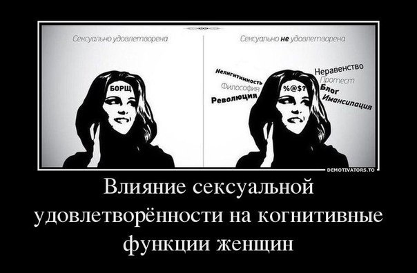 Мифы о феминизме или удар ниже поясаОчередная тусовка. Культурно гуляем у товарища "на квартире". Парни, девушки, творческая элита без определенного возраста. Прошел час, идем гурьбой курить на балкон. Наблюдаю скопление женщин в правом углу балкона. Слышу обрывки фраз. Ну точно о мужчинах говорят. И тут до ушей донеслась фраза: "Да, если бы он был ЭТИМ мужчиной, а то - тряпка." Хотелось подойти и спросить: Дорогая, а когда ты последний раз женщиной была? Нормальной женщиной, без этого напускного пафоса, и показной самостоятельности, поверхностного цинизма пропитанного не то сучизмом, не то чёрным юмором? Дайте нам быть мужчинами! "Браните мужчин вообще, разбирайте их пороки, ни один не подумает заступиться. Но дотроньтесь сатирически до прекрасного пола — все женщины восстанут на вас единодушно — они составляют один народ, одну секту." — А.С. Пушкин Вообще, определение феминизма ничего общего с ненавистью к мужчине не имело, поэтому, прежде всего, являлось идеологией радикальных женщин. Если в общих чертах, то феминизм — это стремление к равноправию женщин с мужчинами во всех сферах общества. В узком смысле — женское движение, целью которого является устранение дискриминации женщин и уравнивание их в правах с мужчинами. Но мы-то с вами знаем, что матушка природа предусмотрела всё иначе, и ни о каком равноправии речи быть не может. Как издавна повелось, мужчина выполнял всё: от строительства жилища, добычи пропитания и защиты самки, до изобретения чуть менее чем всего, что было изобретено со времён каменного века и воплощения этого в жизнь. А самка служила лишь для готовки из приволочённого жратвы, и размножения, с, прилагающимся в процессе зачатия, физиологическим удовлетворением самца. Данная система ценностей до сих пор считается признаком культуры, что является наглядным показателем прогресса в эволюции человечества. (с) И пусть бы жил себе этот феминизм и никому не мешал. Ну… есть женщины, которым очень хочется за что-то побороться. Ну потребность у них такая.. И пусть. Так не тут-то было. Беда в том, что много современных выскочек женского пола в возрасте от 16, и до «старческого маразма» наивно полагают, что они все поголовно «спортсменки, комсомолки и просто красавицы» и способны быть наравне с мужчинами. Хотя в случае чего звучит: «Я же женщина! Мне сложно…». Ведь как удобно, всегда есть отмазка!!! И несут этот бред не «по-настоящему яркие и сильные» женщины (а таким не до феминизма – у них забот по горло), а «что попало», у которого много свободного времени и нечем заняться. В конце XIX — нач. XX вв. тема женских прав и свобод «разливалась» по всем тогда существовавшим СМИ. Однако про обязанности бабы умышленно умалчивали, строя перед собой кирпичную стену, когда им о них напоминали. Особо утончённые особи, нигде не работающие и сидящие на попечении мужей от скуки, либо вконец обнаглев, также возжелали при всём этом иметь равные мужчинам права. В современном мире КАЖДАЯ ВТОРАЯ женщина следует древним инстинктам — по её мнению, мужчина ДОЛЖЕН быть богатым, сильным, желательно ещё красивым и умным. Что же должна женщина? Ничего, ибо она слабый пол, и вообще рождена для любви или, а в особо запущенных случаях царствования над рабами… Это и есть современное понимание феминизма. То, что делает его таким популярным. В последние годы всё чаще мо