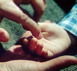- Где были? У бабушки!- соедините его ручки ладошка к ладошке.
