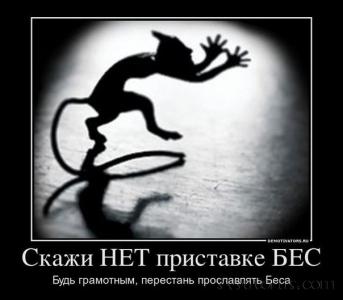 Приставки "бес" в русском языке не существует!За чистоту Русского языка! БЕС… - приставка, внедрённая в русский язык в 1921г. Луначарским-Лениным вопреки православию и правилам русского языка. Это правило, считают православные, было введено специально, чтобы презираемого беса восхвалять и превозносить. Изучение показывает, что приставки «бес» в русском языке никогда не было, а замена истинной приставки «без…» на «бес…» грубо искажает смысл слова. Искусственно внедрённая приставка «бес…» обращается в корень и означает нечистый дух, состоящий на службе дьявола. Плохое произношение (косноязычие) характерно для тех, кто слаб на язык и, соответственно, разумение. Ибо слова есть проявление функций мозга. По этим причинам слово обретает двусмысленность, в человеческом сознании развивается оборотневость (бесовщина). Более того, со словом «бес», рассматриваемом в качестве корневого, другие слова русского языка не сочетаются, словопроизводных слов (за весьма редкими исключениями) не образуют. Бе…честный; бе…славный; бе…сильный; бе…человечный; бе…корыстный; бе…совестный; бе…крайний; бе…сердечный и т.д. Безславный означает позорный, постыдный. Безсильный - немощный, слабый. Однако если вместо сильной жизнеутверждающей буквы «з» стоит более слабая буква «с», то слово обретает прямо противоположный смысл. Получается, что дух нечистый становится хозяином положения. Например, по смыслу выходит, что не безславный, а бес-славный. Сам смысл коренным образом изменяется и переворачивается настолько, что вместо отрицания присутствия чего-либо, получаем смысл присутствия нечистого духа. Например, не безсильный, а бес-сильный. Следует признать правильной традиционную славянскую точку зрения - чётко различать при произношении и написании «без…» и «бес…». Словарь В.И.Даля учитывает именно эту точку зрения. Источник: Русская Правда Читайте, также, по теме статью Александра Новака Без сердца или БЕСсердечный?! Просмотров: 3619