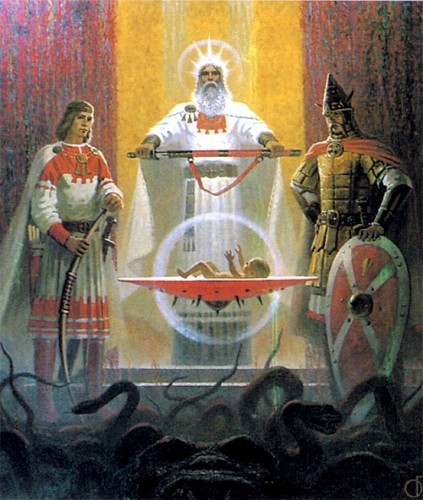 Сословие воиновСословие воинов, управленцев и защитников своего рода, наиболее приближенных по познанию процессов мироздания к русским волхвам, имели способности переходить в другие измерения, воздействовать на сознание окружающих, вводить себя в другие состояния, направлять диких животных на врага, управлять своим организмом искусней, чем сегодняшние йоги. О чом свидетельствуют древние рукописи и манускрипты. Часть этого сословия воинов, посвятивших свою жизнь только боевым искусствам и военному делу, передавали профессиональные навыки и знания также из поколения в поколение, что и формировало на протяжении веков генетические коды. Профессиональные воины с заложенными в них генетическими кодами и обладающие вышеперечисленными способностями, именовались казаками-характерниками . Умение управлять восходящими и нисходящими потоками энергий Земли и Космоса, концентрировать их в себе и использовать, давало характернику возможность в разы увеличить свой физический потенциал (тем самым быть неуязвимым) и воздействовать комплексно на противника даже на расстоянии. Воин, владеющий энергетическим центром ХАРА — и есть характерник. Умение видеть с закрытыми глазами, слышать с «закрытыми» ушами, чувствовать спиной противника, раствориться на его глазах или нейтрализовать противника путём отключения его энергосистемы или сознания, изменить в себе ритм времени и многое другое, послужило созданием легенд и былин о храбрости и непобедимости казаков. Несмотря на то, что на протяжении многих веков знания, а вместе с ними и многие способности были утрачены в родах воинов, потомков казаков-характерников можно встретить и в наши дни. Генетическая память и глубокие древне-славянские исторические корни продолжают являть на землю-матушку защитников Светлой Ƥƴси. Следующей удивительной особенностью характерников была их способность к оборотничеству. Вообще же «ликантропия» (превращение людей в волков) в славянских землях имеет корни глубокие. Самые ранние сведения о ней сохранились у Геродота ( V в. до н.э. ) в его знаменитой «Истории», где в книге четвертой «Мельпомена» описываются нравы скифского народа НЕВРОВ, могущих оборачиваться в волков. Рассказ Геродота более чем через два тысячелетия смыкается с многочисленными этнографическими данными о волколаках, верования в которых были живы на Мароссии до самого недавнего времени. Вообще же культ волка у индоевропейских народов очень древний и сложный, и напрямую связан с воинскими функциями. Покровителем волков у славян считался святой Егорий (Георгий, Григорий), заменивший собою в пантеоне Перуна. В языческие времена образ громовержца представляли в сопровождении двух волков, считавшихся его хортами (псами Манипуляции с пространством и временем были важными условиями мастерства характерников. Но основа всех этих чудес — это особое понимание и взаимоотношения с Природой, с Миром Силы. Например, используя метод ритмических рифмованных фраз, поющихся под определенный ритм движения маятника, характерник входил в особую сопричастность с окружающим его местом, как бы растворяя себя в нем. Отсюда сверхчувствительность к малейшим колебаниям силы и тем более силы противника. Еще был такой термин при обучении входа в Ясну: “вывернуться наизнанку“. То есть, пройдя третий глубок