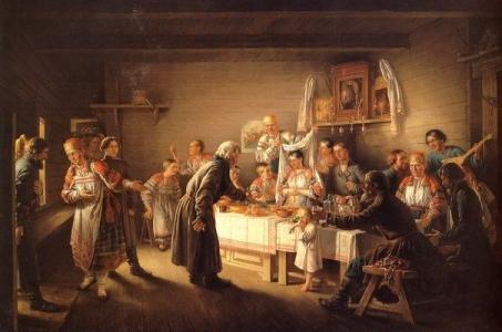 Сватовство на РусиОбряд сватовства - видоизмененный обряд «купли» невесты, бытовавший у многих, в том числе у славянских, народов в древности. Об этом обычае сегодня напоминают сватовские формулы, например, «у вас товар, у нас купец», "У вас - курочка, у нас -петушок, сведем их в один хлевушок" . Более того, в некоторых областях сваты начинают свою речь с вопросов: не продается ли в доме отца невесты зерно, бычок, поросенок, а затем уже переходят к девушке. Обычай устроения браков при помощи сватов относится к самым старым свадебным обрядам. Этим обычаем пользовались все сословия: от крестьян до князей. В летописях сохранились указания на использование этого обряда, например, при заключении брака древлянского князя Мала с княгиней Ольгой, к невесте от древлян отправлялись сваты, которые звались «людьми добрыми», «гостями добрыми». В другой летописи о свадьбе дочери великого князя Всеволода III Верхуславы с Ростиславом, сыном Рюрика Белгородского, говорится, что «князь Рюрик ... Якова-свата и бояр отпустил к Всеволоду в Суздаль с великой честью, одаривши их богато». Изначально в роли сватов выступали старосты, выбираемые из почетных людей села или деревни, т.к. невеста «покупалась» не столько для жениха, сколько для рода. Поэтому количество сватов могло быть любым, как например в уже упомянутом случае сватовства к княгине Ольге. Позднее, когда на первый план в заключении браков вышли родители молодых, количество сватов сократилось до двух: представителей отца и матери. В Псковской губернии в роли сватов выступали священники. После того, как родители жениха принимали решение о свадьбе, отец жениха шел к священнику, а тот уже отправлялся к родителям невесты. Ловкость, обходительность с людьми, умение завлечь их своими речами - вот необходимые черты, которыми народ обычно наделяет хорошую сваху, что отразилось в поговорке: «на свашенькиных речах, как на санях, - хоть садись, да катись» , «Никто против свахи не соврет.» . А старание свахи преувеличить достоинства жениха и невесты и умолчать о каких-то их недостатках, выражено в поговорках: «Сваха чужие грехи на душу принимает», «Одна только сваха за чужую душу божится» . Перед началом сватовства у наших предков сваха нередко прибегала к суеверным действиям. Так, например, в Архангельской губернии она в любое время года подходила к печи и прикладывала к ней руки. Это действие, по представлению народа, служило залогом успеха в сватовстве. Также, являясь к родителям невесты с предложением, сваха садилась на лавку таким образом, чтобы половица из-под ее ноги направлялась прямо к двери, что означало скорое оставление невестой родительского дома. Как устроительница свадьбы, сваха считалась необходимым свадебным чином, занимавшим почетное место среди поезжан. В свадебных церемониях сваха играла значимую роль. Помимо непосредственно сватовства, она причесывала новобрачным головы, кормила их курицей, когда они приходили в спальню, осыпала молодых в спальне и церкви хмелем и житом в знак благополучия и плодородия в супружеской жизни. В древних служебниках сваха носит название «кумы» или «венчальной матери». Сам обряд сватовства проходил следующим образом. Самым благоприятным временем для сватовства считались вечера субботы, воскресенья, вторника и четверга. Сватам полагалось надеть на себя «доб