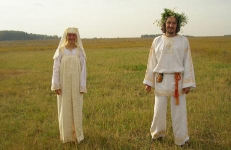 Венчание по славянский в наше время1. Обряд был задуман прямо как по книге, слово в слово! На участке будущего поместья уже был сооружен шалашик и молодые ждали нас в нем к 10 утра. Мы долго собирались и пытались репетировать песни. Все с саженцами! Не по одному саженцу принесли. а по нескольку! Некоторые даже тазики с цветами принесли - этакие готовые клумбы! Человек 60 собралось. Денек был пасмурный, но теплый для конца сентября. Встав у будущего входа в поместье хором спели песню "Мы желаем счастья вам". Под эту песню влюбленные вышли к нам из своего шалашика, светящиеся от радости и счастья! Потом Владимир начал излагать нам проект поместья. Мы стояли на одном месте, а гектар-то большой, даже колышек дальнего угла из-за травы было не очень-то видно и планов посадок много - не все было конкретно понятно. Участок "леса" не обозначен колышками, колышков для указания места саженцев почти не было... В общем еще много раз, потом уже при посадке, переспрашивали что и куда сажать. Еще в книжке предлагалось людям, чьи саженцы не были названы, сажать их в изгородь. Но! Тут с изгородью все было продуманно и неназванным саженцам места в ней не было! Один край полностью вишневый, Другой - в определенном порядке чередуются рябина, черемуха и калина, на других - сосны, ели и рябина. Так что "неназванные" - все в лес! Люба полностью сама планировала часть поместья, поэтому рассказывала проект после Володи не меньше его. От волнения даже забыла какую фразу высадила =))) ! Вообще волнение чувствовалось во всем! Не просто венчание - а ПЕРВОЕ в регионе подобное венчание! Под конец рассказа проекта молодые спросили что из неназванного им принесли гости и тут же быстро определились куда это все пристроить. Далее был сам обряд... Слово в слово по книге. У всех какие-то сильные чувства накатили что и слов-то для них не найдешь! Ощущалось что-то торжественное и великое! 2. Животных не дарили - молодые постоянно пока не будут в поместье жить. Еще хоровод водили на центральной полянке, преобразившейся за час после появления на ней клумб цветущих цветов. Потом уже не в поместье, а на "общеполитической" поляне готовили, накрывали всей толпой стол. Совсем непохожи явства на этом столе были, не те, что подают в ресторанах и кафешках и на обычных свадьбах, вроде просто все, но вкусно и сытно. Были очень вкусные традиционные старинные напитки - сбитень, медовуха, сурья. Так уж получилось что запланированных гармониста, тамады, балалайки не было. В общем никаких муз.инструментов. Но игр, танцев и хороводов уже достаточно знаем, чтоб самим себя развлечь. Даже несколько раз спорили какой из нескольких танцев сейчас танцевать будем =))! И сами пели, и музыка народная из машины веселые ритмы наигрывала. В общем весело было! И еще очень понравился вечером, когда стемнело, хоровод при свечах. В центре стояли Владимир с Любой, а все гости с горящими свечами рисовали под музыку в хороводе волны, сердца, подарки. С небом непонятно что творилось - то расчищалось над нами, то тучки набегали, то вдруг из чистого неба дождик брызгал! Большинство разъехалось по домам, испугавшись, наверное ночевки в сентябрьском лесу =)) А с оставшимися долго сидели при звездах у костра, слушали музыку и душевно разговаривали... А вообще... во мне что-то словно изменилось немного внутри, после того, как на таком венчании побывала! П
