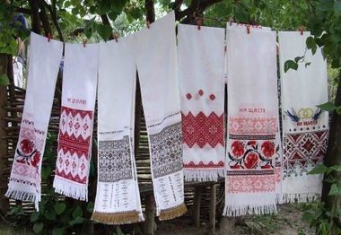 Золотые правила вышивки свадебных рушниковГоворя об особенностях использования свадебных рушников необходимо помнить об общих принципах и правилах вышивания свадебных рушников. Главное правило: свадебные рушники каждая девушка должна вышивать сама. Полотно для рушника должно быть цельным и ни в коем случае не сшитым из двух или нескольких кусков. Орнамент должен быть непрерывным от края до края, это символизирует непрерывность жизненной дороги молодых. Если в орнаменте есть изображение, что символизирует молодую пару (например, пара голубей), то ни в коем случае нельзя располагать над этим изображением горизонтальные элементы, которые отделяют символ семьи от незашитой белой середины рушника, которая символизирует Божье благословение. Вышивая рушник, необходимо отгонять от себя плохие мысли и плохое настроение. Нужно следить, чтобы изнанка рушника была аккуратно прошита, иначе жизнь будет, как и неаккуратно вышитый рушник - ...(*здесь фразеологизм). Для вышивания используют ОДНУ ИГОЛКУ и ею выполняют весь рушник. Считается плохой приметой потерять или сломать иглу во время работы Нельзя украшать рушник мережками – жизнь будет дырявой. Нельзя вышивать свадебные рушники ночью – в это время суток вышивают только магические вещи. Вышивка должна быть чистой и аккуратной с обеих сторон – лицевая сторона для людей, изнаночная – для Бога. Обязательно стараться аккуратно изнанку делать (особенно перекрещивать нити плохо), что бы сплетен о семье не было, что бы чужие люди не обсуждали и в личную жизнь не вмешивались Рушник – это дорога жизни, поэтому полотнище его должно быть целым и непрерывным, как жизнь (не вставляйте в середину рушника никаких кружев или тесемок – этим вы навредите, разрезанную жизнь уже не сошьешь, как бы ни старался). На свадебных рушниках вышивают пары таких птиц, как сокол, индюк, павлин, петух и курица. Не вышивают кукушек – вдовий символ, соловьев – символ неженатых парней (чтобы муж не изменял). Все размеры рушника (ширина, длина) должны делиться на семь. Хотя!!! известный этнограф и историк Ю.Мельничук пишет, что длина рушника должна быть кратна росту вышивающего. По другим источникам (Н. Свиженець) размеры свадебного рушника, т. е. и длина и ширина должны быть кратными 7. Рушники в историческом музее Днепропетровска, знаменитая коллекция Яворницкого, примерно 50 см в ширину, но есть и уже. Сколько людей, столько и мнений. Но не один из исследователей не может быть до конца уверен в правильности своей теории Центр рушника обязательно должен оставаться пустым, без вышивки – Божье место. Становясь на рушник, молодые получают благословение свыше. Середина обязательно пустая - что бы жизненная дорога легкой и просторной была, говорят через эту белую середину Божий свет и сила проходит Вышивкой должна быть заполнена 1/4 каждой половины рушника После свадьбы рушники хранятся в семье молодых, как символ счастливой семейной жизни в скрученном в трубочку виде, чтобы всякая нечисть по кругу походила и поняла, что здесь ей нечего делать. Свадебные рушники, особенно под ноги, используют один раз! В случае очень счастливой семейной жизни в наследство передают только узор, а рушник вышивается новый. Рушники не берут напрокат – вы же судьбу не берете напрокат. Cвадебный рушник можно на полный месяц и в яркие звезды разлож