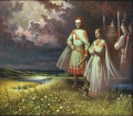 Старинная одежда русской знати по своему покрою в общем имела сходство с одеждой людей низшего класса, хотя сильно отличалась по качеству материала и отделке. Тело облегала широкая, не доходившая до колен рубаха из простого холста или шелка, смотря по достатку хозяина. У нарядной рубахи, обычно красного цвета, края и грудь вышивались золотом и шелками, вверху пристегивался серебряными или золотыми... Прочтено: