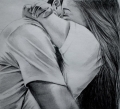 Юноша подарил любимой огромный букет роз. Она прильнула лицом к душистым лепесткам, вдохнула их аромат, подняла глаза, с любовью и благодарностью посмотрела на любимого и счастливо улыбнулась.